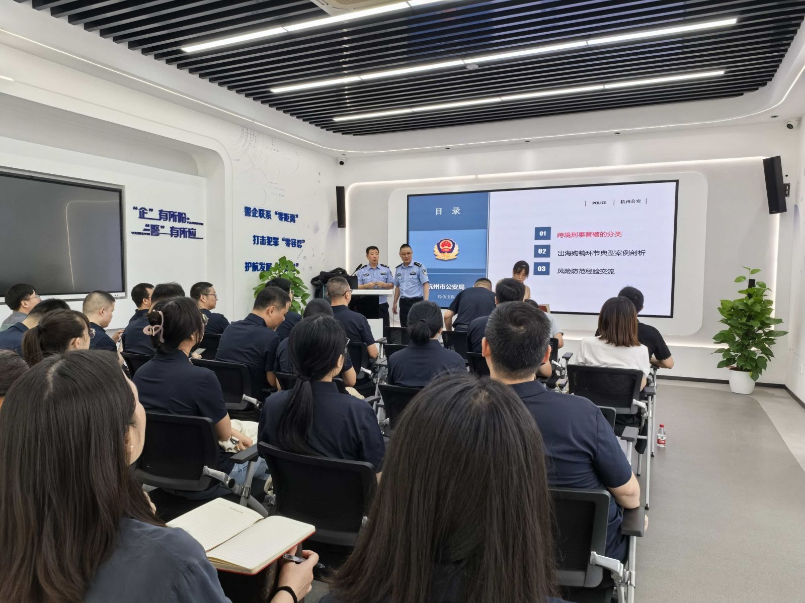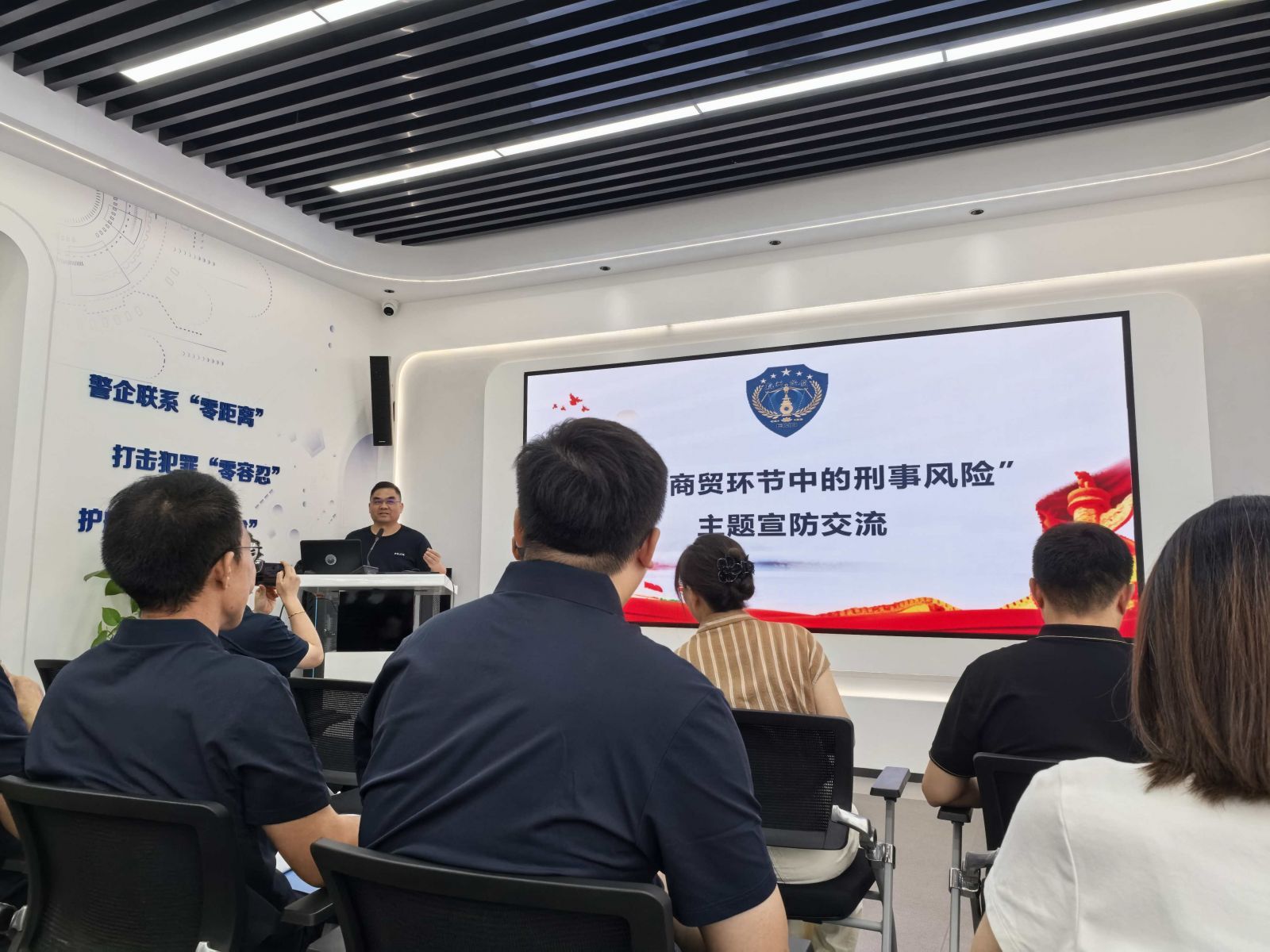Nearly 30 people participated in this event, including representatives from Zanyu Technology Group, members of the Overseas Risk Expert Group, the research team from Zhejiang Police Academy, the Economic Investigation Detachment of the Municipal Public Security Bureau, and police officers from the Economic Investigation Brigade of Binjiang Branch. The activity is divided into three parts: on-site observation, case warning, and expert exchange. The content is rich and targeted, providing valuable risk prevention and control experience for enterprises.